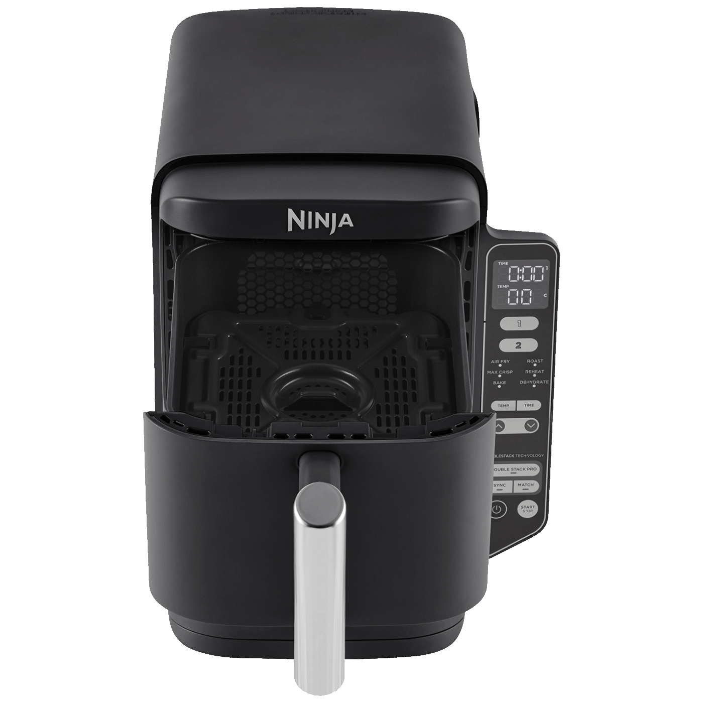 Elegantna upravljačka ploča lako je dostupna sa strane, tako da možete jednostavno odabrati željene postavke u svakoj ladici. Znamo da je život užurban i pun smetnji, stoga Ninja Air Fryer automatski prestaje kuhati kada digitalni mjerač vremena istekne. U kutiji ćete pronaći knjižicu s receptima s mnoštvom ideja za početak i tablicama koje će vam pomoći da izvučete najviše iz svog novog uređaja.