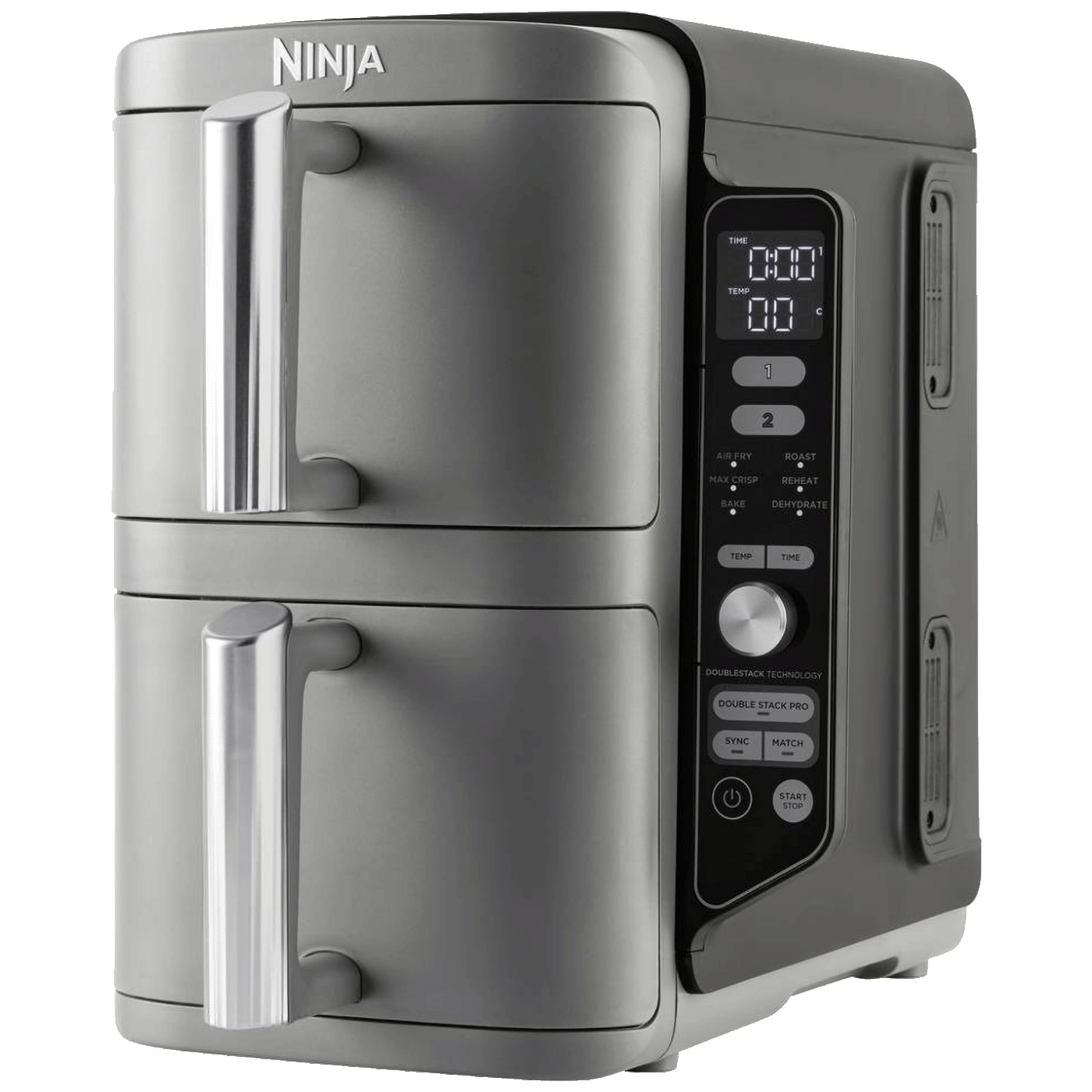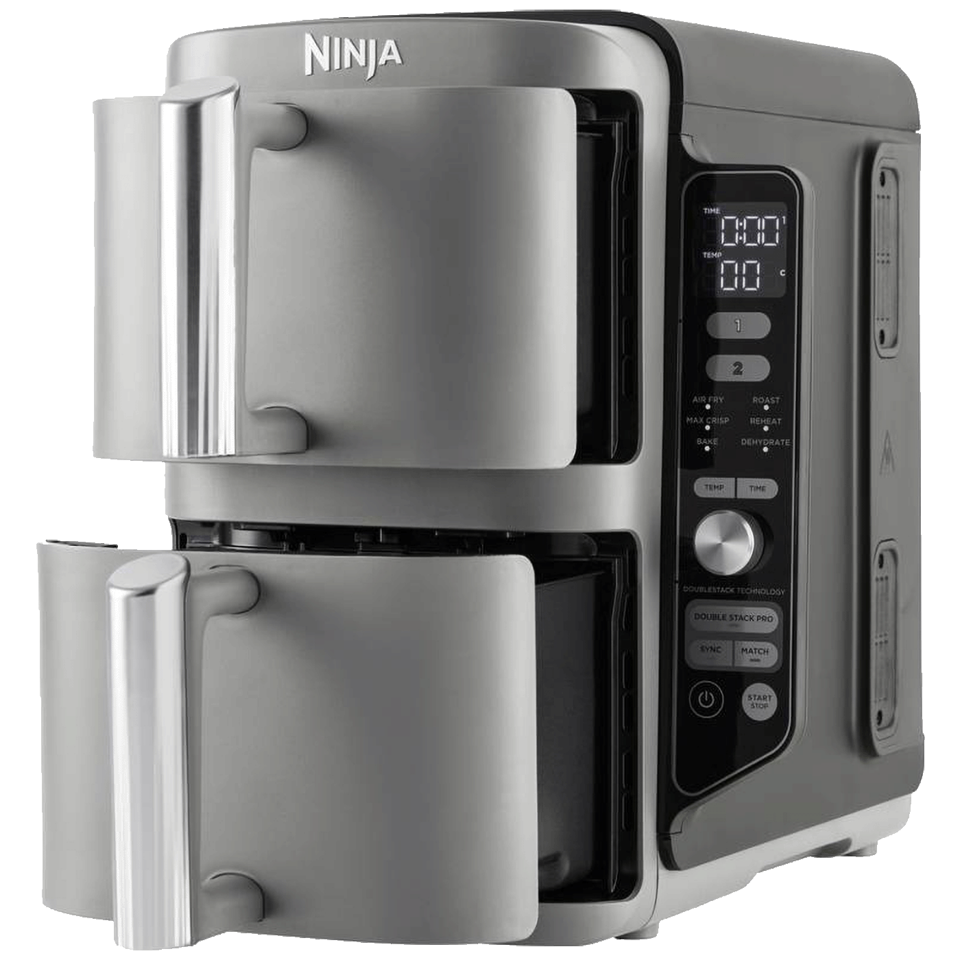 Želite li veću fritezu u svojoj kuhinji, ali imate ograničen prostor za radnu površinu? Predstavljamo dvoslojnu zračnu fritezu Ninja Double Stack XL.