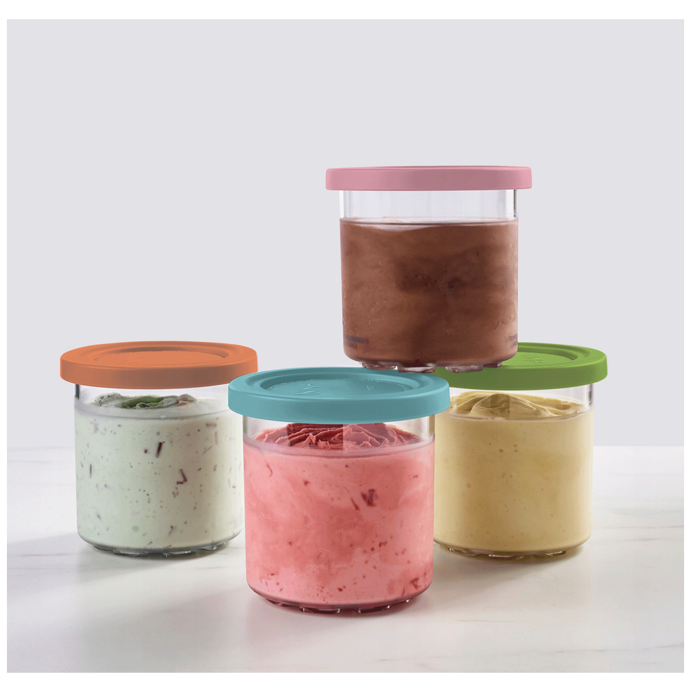 Zahvaljujući poklopcima u različitim bojama, lako ćete znati koji je okus u kojoj posudici – bez zabune! Poklopci hermetički zatvaraju sadržaj i tako zadržavaju svježinu i teksturu sladoleda.