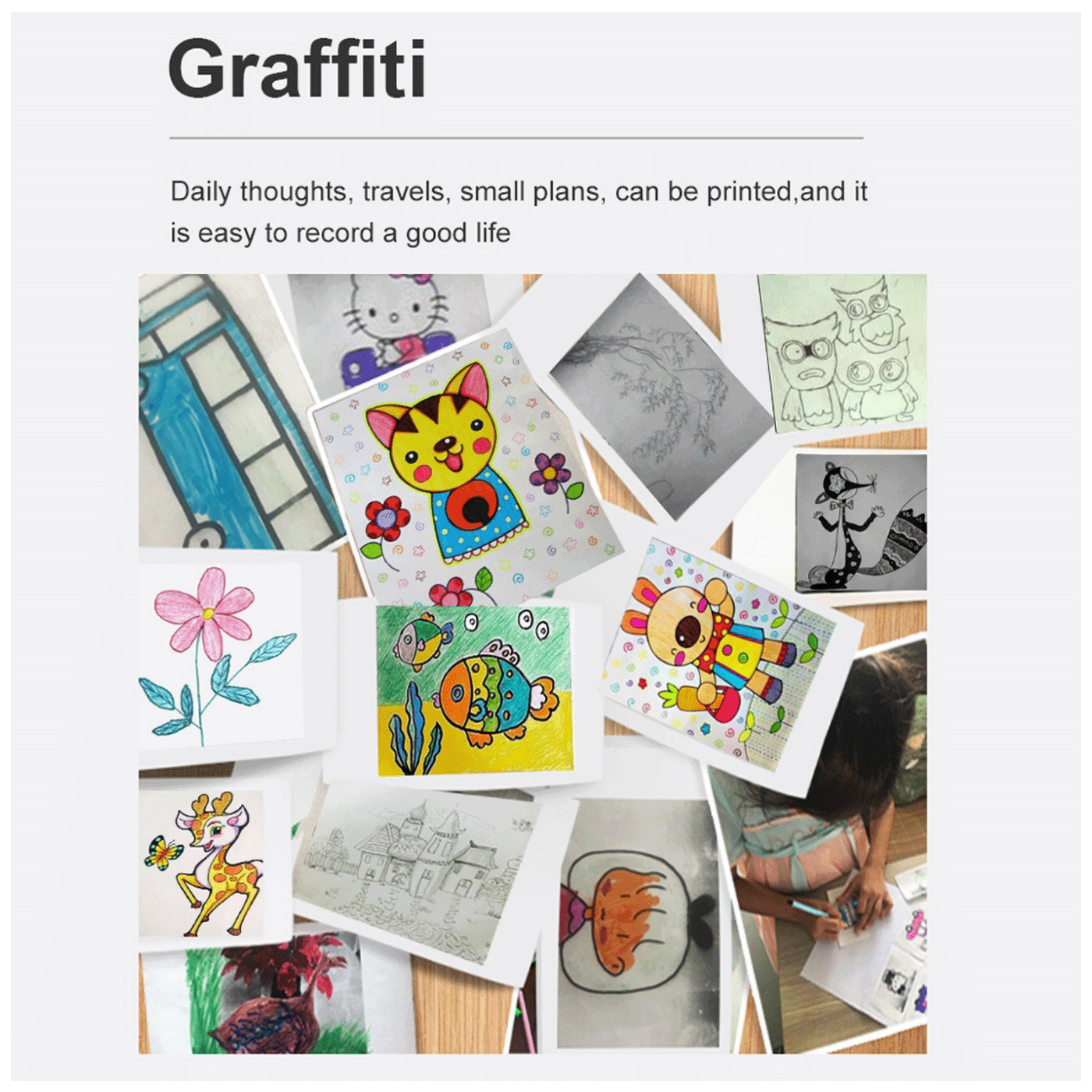 5. Podržava više načina štampanja i pruža više funkcija. Idealno za štampanje crno-bijelih slika / fotografija, napomena, spiskova za kupovinu, bilješki o učenju / sastancima, naljepnica, web stranica, QR kodova, zapisa itd.