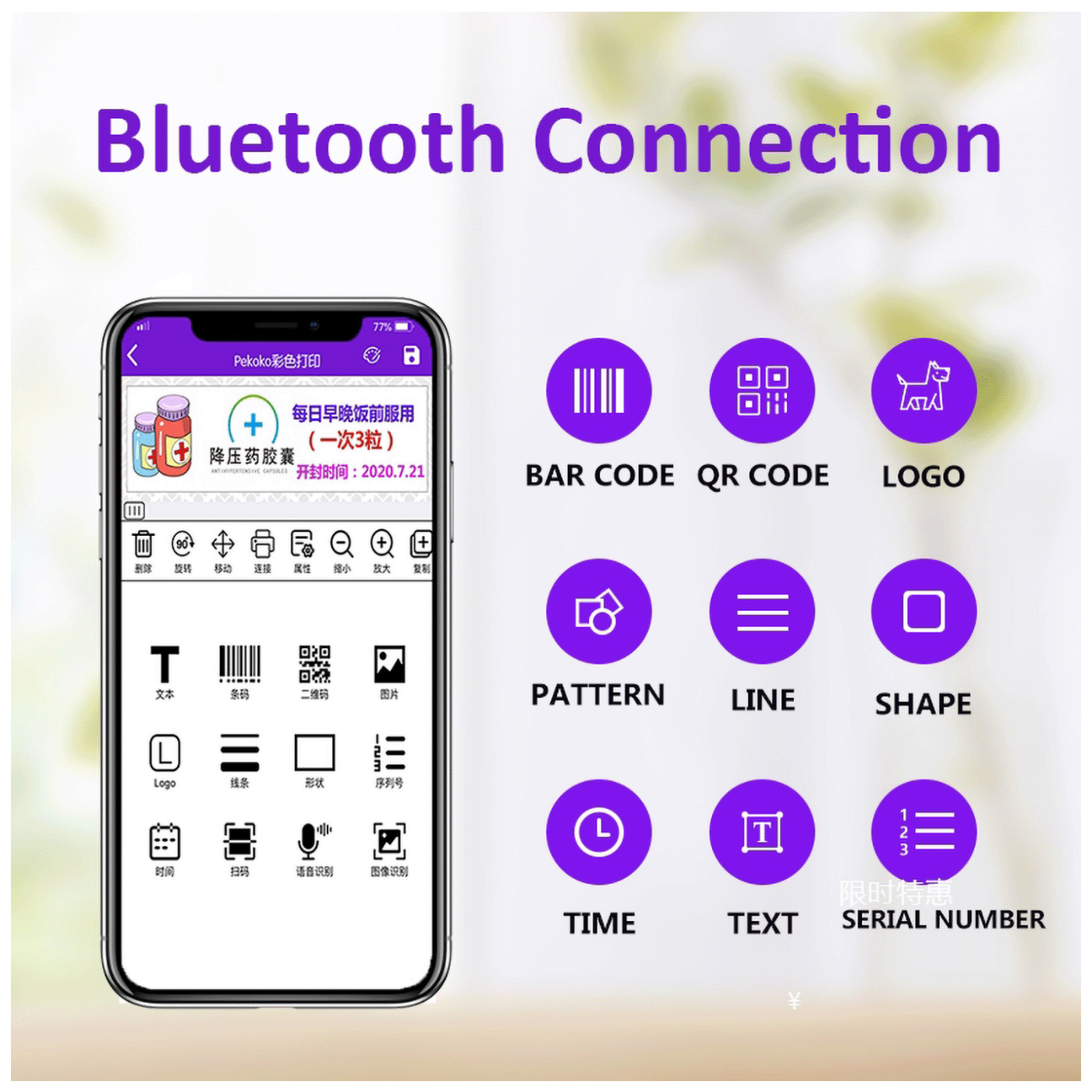 Ručni štampač etiketa u boji sa Bluetooth vezom, prenosivi mini kućni inkjet štampač