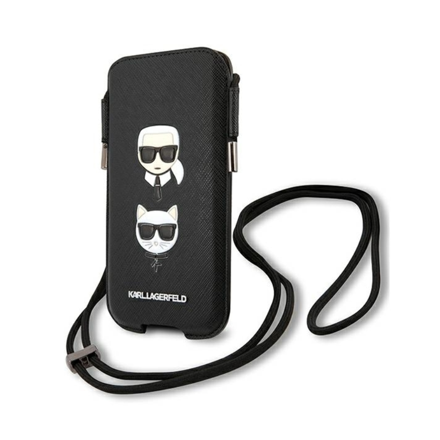 ORIGINAL KARL LAGERFELD TORBICA SAFFIANO IKONIK KARL&CHOUPETTE HEAD KLHCP12MOPHKCK 6,1 INČA CRNA