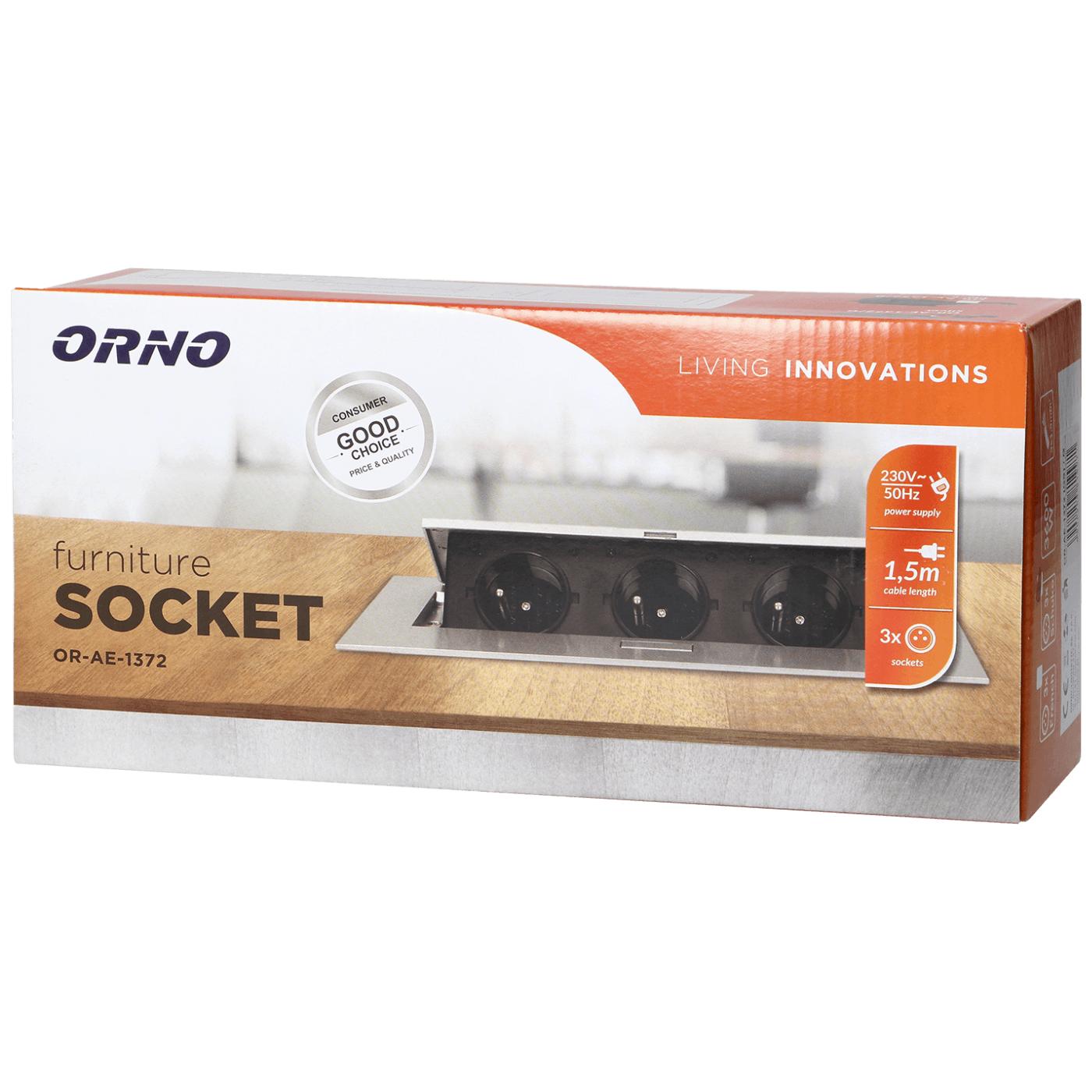 Orno Produžni kabel sa 3 x Schuko utičnice, ugradbena – OR-AE-1372(GS)/G
