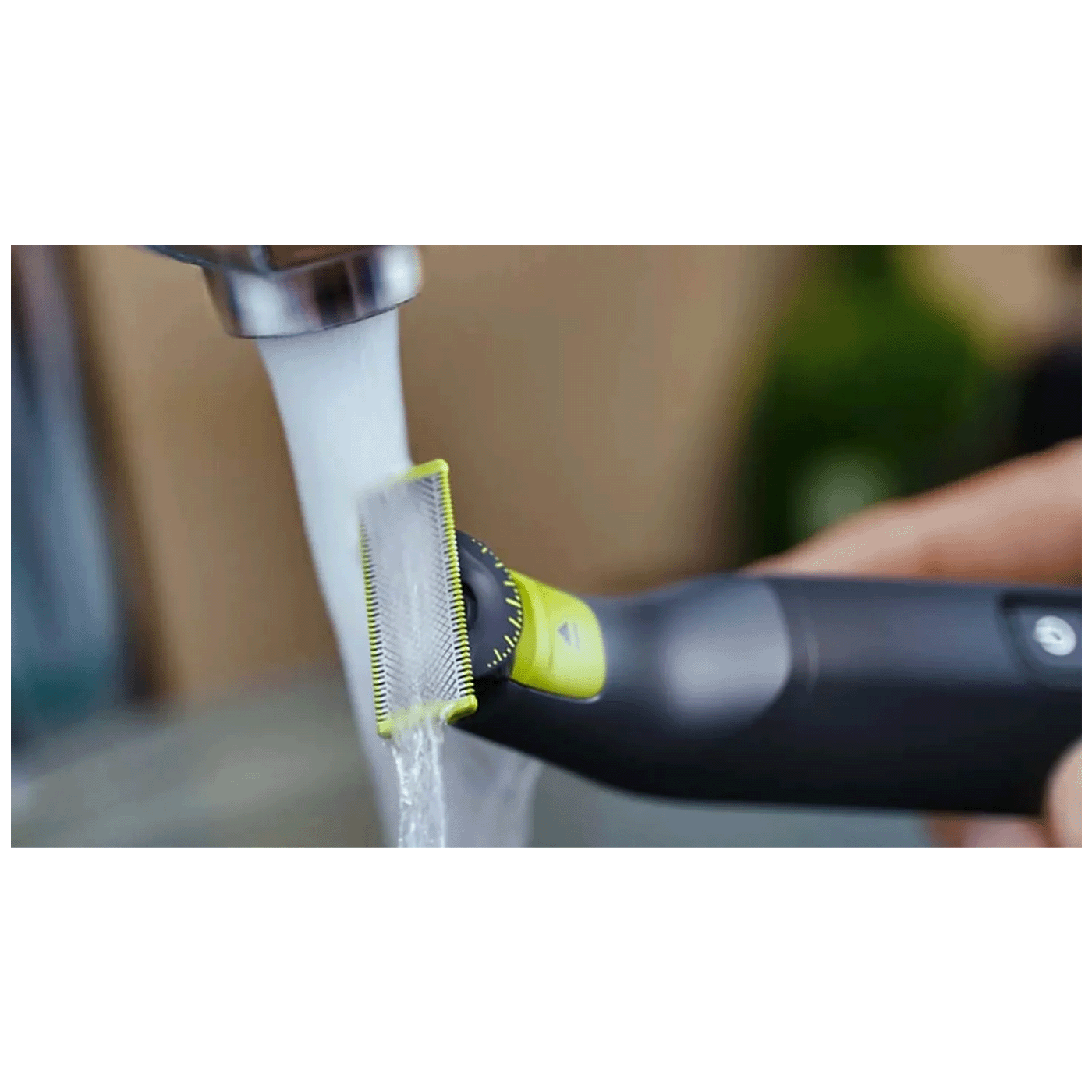 OneBlade potpuno je vodootporan (IPX7) pa se lako čisti: samo ga isperite pod mlazom vode. Možete brijati mokru ili suhu kožu, čak i pod tušem – kako god preferirate. Pjena za brijanje nije potrebna.