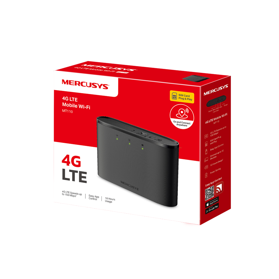 ROUTER Mercusys MT110 4G LTE mobilni Wi-Fi, 2200 mAh baterija, 4G LTE brzine do 150 Mbps, 150 Mbps WiFi 2,4 GHz, SIM kartica Plug and Play, MERCUSYS aplikacija, povezivanje do 10 uređaja