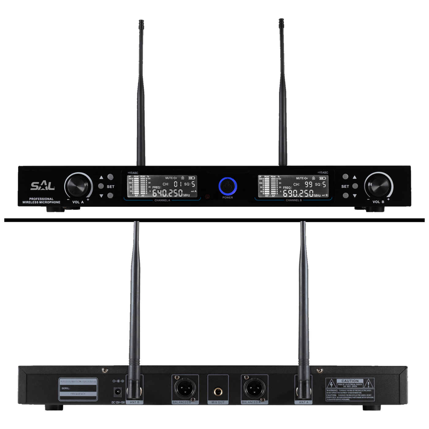 Set 2 bežična mikrofona i prijemnik, domet do 140 met. ( na otvorenom ), radna frekvencija UHF 518 – 690 MHz, audio izlaz 0 – 500 mW, osjetljivost 105 dB, sučelje 2 x XLR / Ø6.3 mm jack, višenamjenski digitalni zaslon, prikaz frekvencija / status kanala / stanja baterije, mjerač jačine RF radio signala, AF mjerač razine audio signala, 2 x 100 kanala za odabir, automatsko ili ručno podešavanje, brzo infracrveno uparivanje, uključivanje / isključivanje bez buke, dimenzije: mikrofon Ø50 / 35 x 265 mm, prijemnik 420 x 55 x 220 mm, napajanje : mikrofon 2 x AA baterije ( nisu uključene u pakiranje ), prijemnik 230 V ~ ( adapter ), mogućnost ugradnje u rack policu
