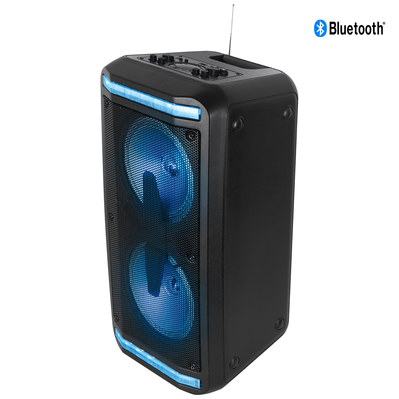 Prenosivi multimedijalni zvučnik sa daljinskim upravljačem, 2-way bass reflex 2 x 20 cm, snaga 80 / 60 W, Bluetooth bežična veza, ugrađen FM radio sa automatskim traženjem stanica, teleskopska antena, opseg 87.0 – 108.0 MHz, MP3 player, reprodukcija sa USB-a ili SD memorijske kartice, AUX ulaz, ulaz za mikrofon( 6.3 mm), instrument ulaz. LED promjenjivi svjetlosni efekti. KARAOKE funkcija.