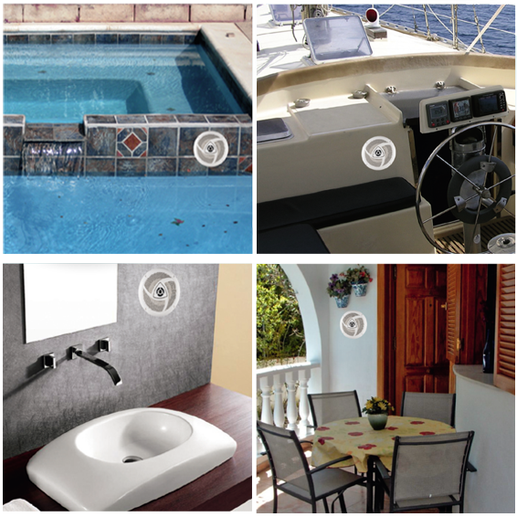Set zvučnici, ugradbeni, 2-sistemski koaksialni dizajn, snaga 150W ( 2 x 70W), frekventni opseg 75 – 20000 Hz, osjetljivost 88dB, djelimično optporan na vlagu i paru, idelan za ugradnju u saune, terase, kupaonice, plovila, Ø 165mm dimenzije zvučnika ( ugradbene ), dimenzija Ø180mm x 60mm
