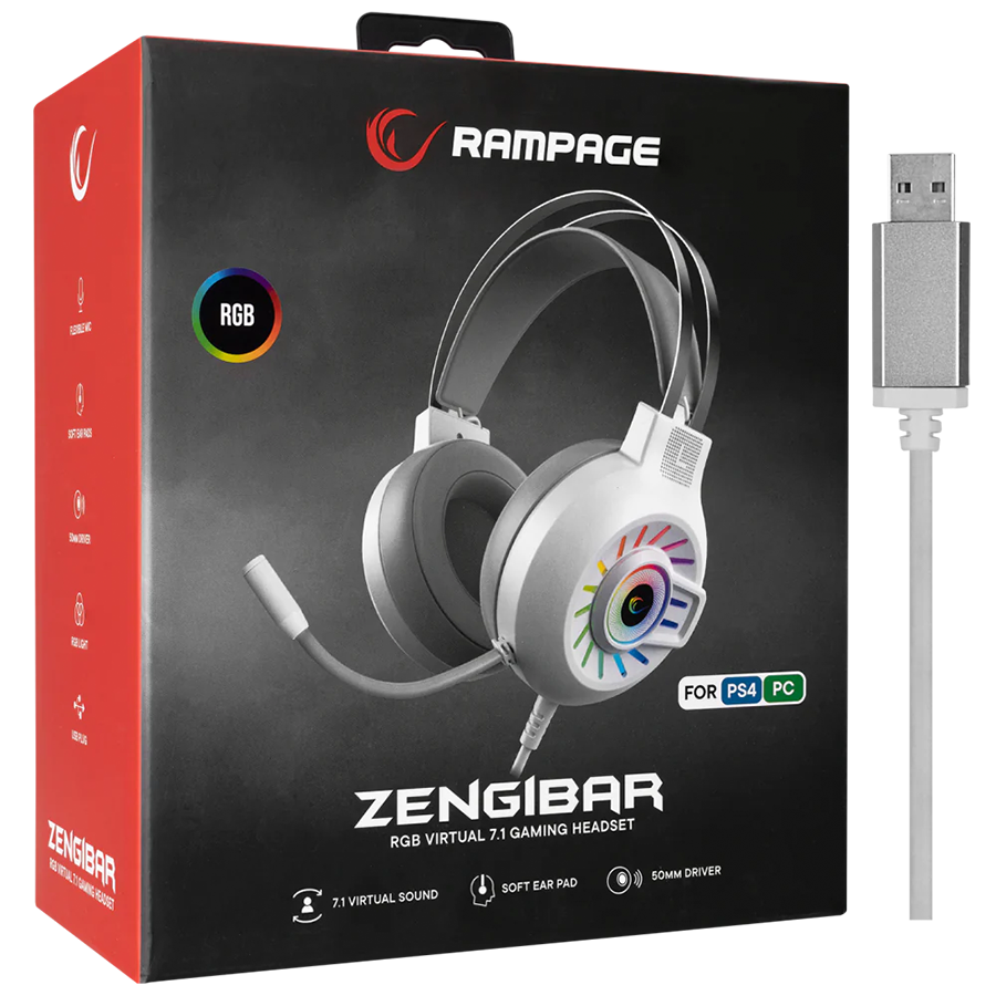 Slušalice sa mikrofonom gaming RAMPAGE RM-K44 ZENGIBAR White 7.1 Surround RGB Light Effect, 36094