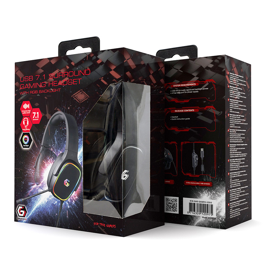 Slušalice sa mikrofonom GEMBIRD gaming, 7.1 Surround Headset with RGB backlight, 2 pcs x 3.5 mm plug (input + mic); USB-LEDt power, GHS-SANPO-S300