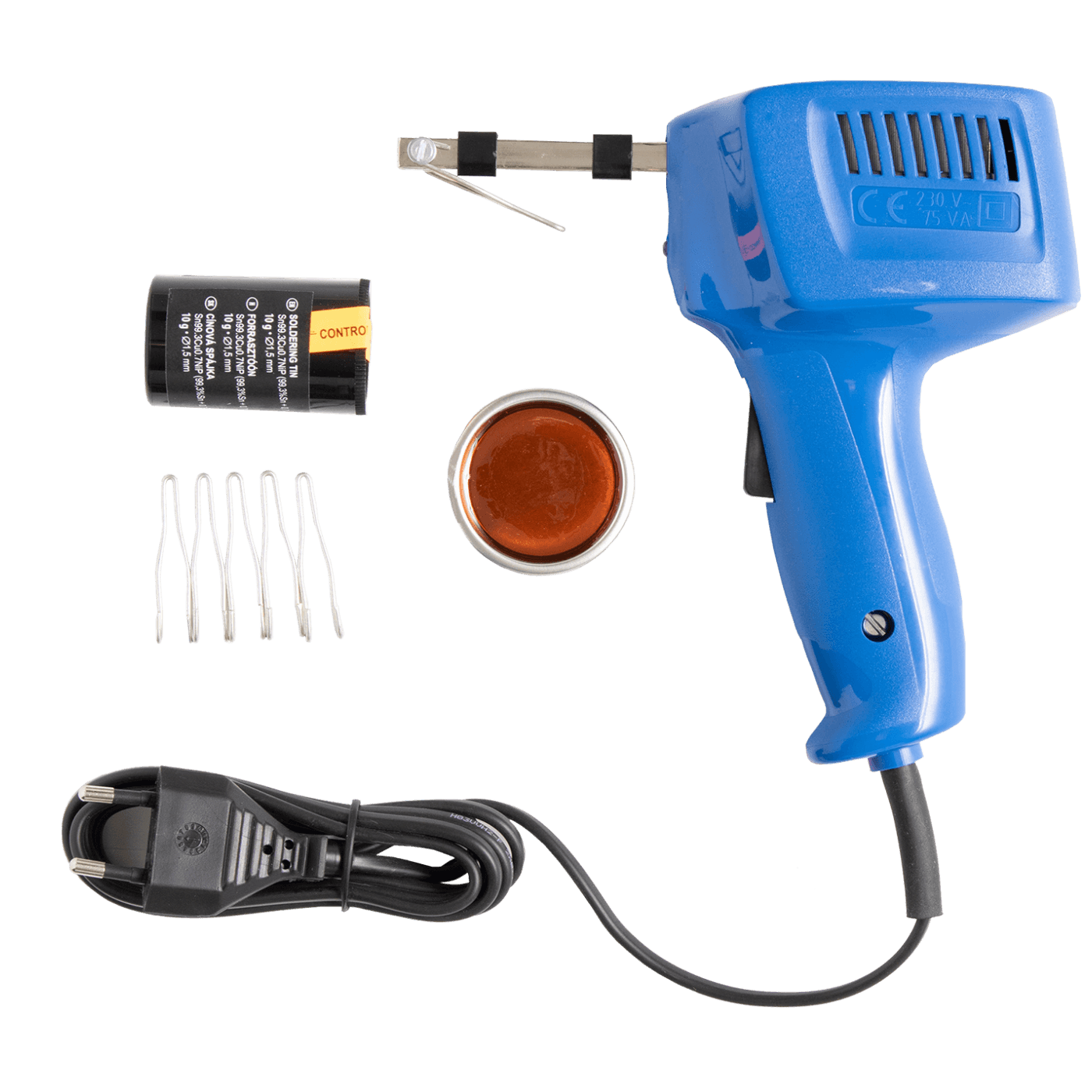 Lemilica, set, snaga 75 W, izuzetno pogodan alat za rješavanje mnogih poslova lemljenja. Set sadrži: 5 + 1 vrhova za lemilicu, 16 g tinol paste, 10 g tinol žice, torbica za nošenje, ugrađen LED svjetlo, napojni kabel dužine 1.8 met., napajanje 230 V / 50 Hz / 75 W