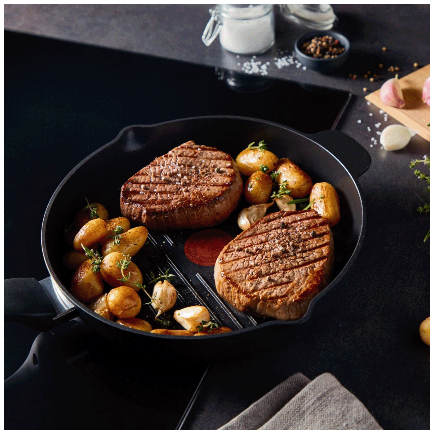 Tefal XL Force grill tava dimenzija 26×26 cm idealna je za pripremu mesa, ribe i povrća s autentičnim grill efektom. Zahvaljujući kvalitetnom neprianjajućem premazu, omogućava pripremu hrane uz minimalnu količinu ulja te jednostavno čišćenje nakon upotrebe. Integrisani Thermo-Signal indikator pokazuje optimalnu temperaturu za početak pečenja, čime se osiguravaju savršeni rezultati. Robusna konstrukcija i duboke grill linije omogućavaju ravnomjerno pečenje i karakteristične tragove roštilja.