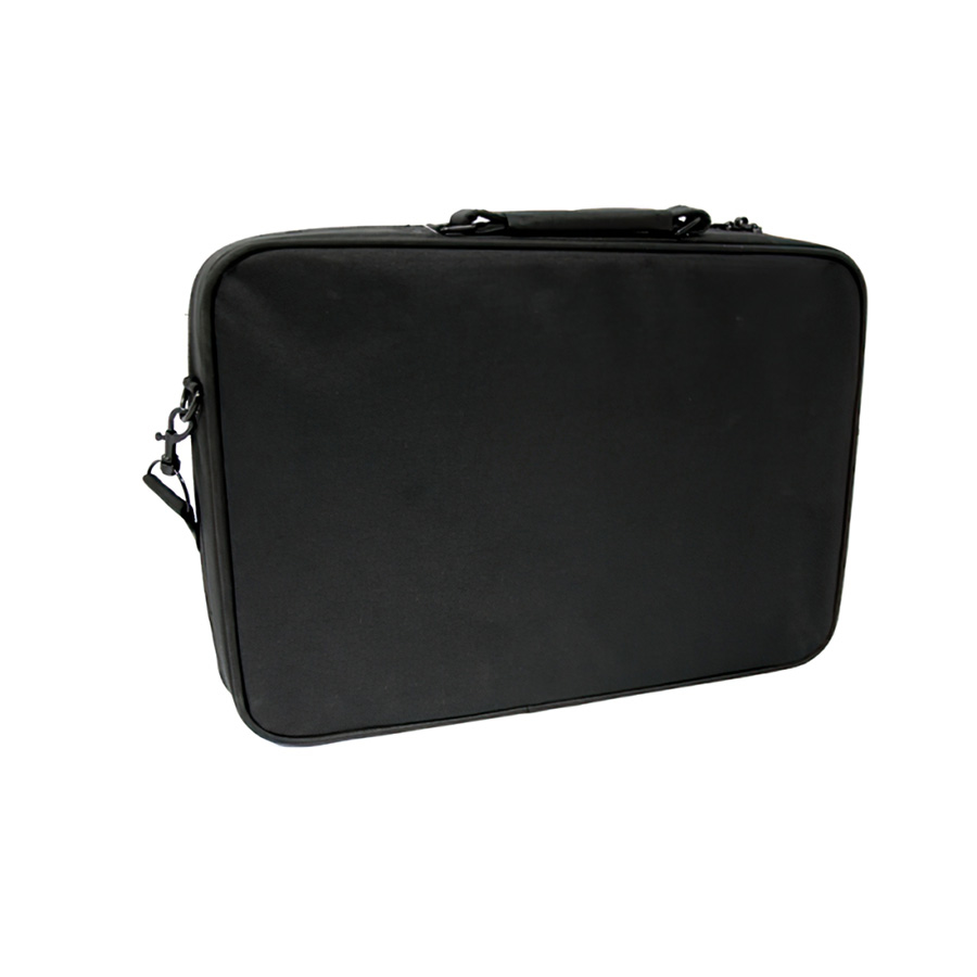 Stylish laptop bag size 17 “or less (adjustable laptop compartment size using a sliding strip mount on velcro to adjust to the size of most notebooks). The bag is made of high quality material. The side walls are reinforced with a metal strip, and the inside lined with a soft foam layer effectively protects the notebook from knocks and scratches. The front has a functional pocket for documents. Notebook compartment on each side is lined with soft materials. Inside is a handy pocket for documents and a belt holding extra notebook. Metal hinges and shoulder strap provide high strength and reliability. Adjustable shoulder strap is attached with a very easy to use, metal carabiners, and in its central part has a rubber cap increasing comfort.