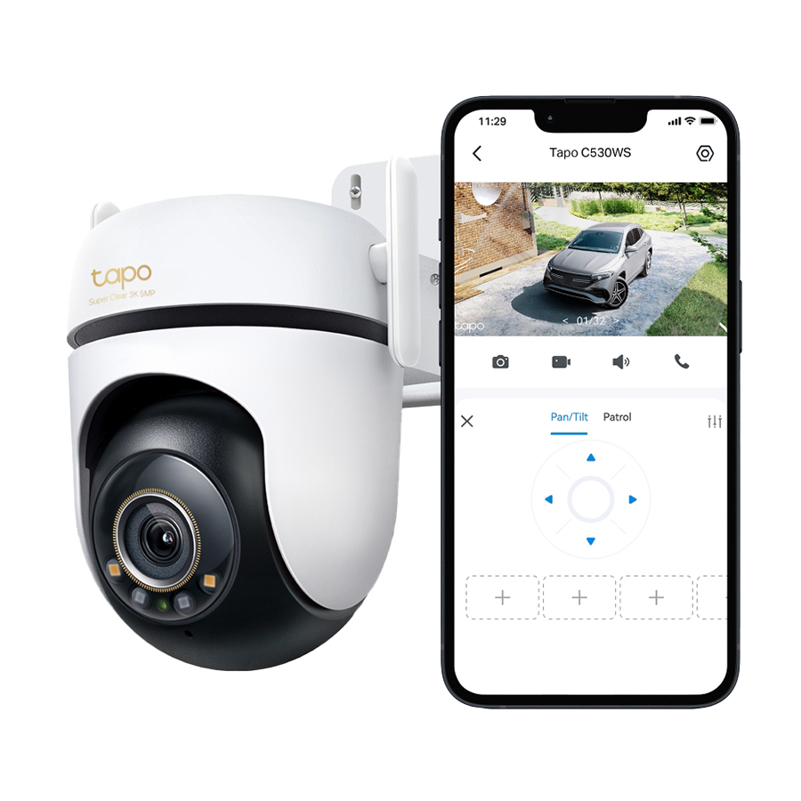 TP-Link Tapo C530WS Outdoor Pan/Tilt Security Wi-Fi Camera, 3K 5MP (2880x1620), 2.4 GHz, 2 x External Antennas, 1 x Ethernet Port, TAPO-C530WS