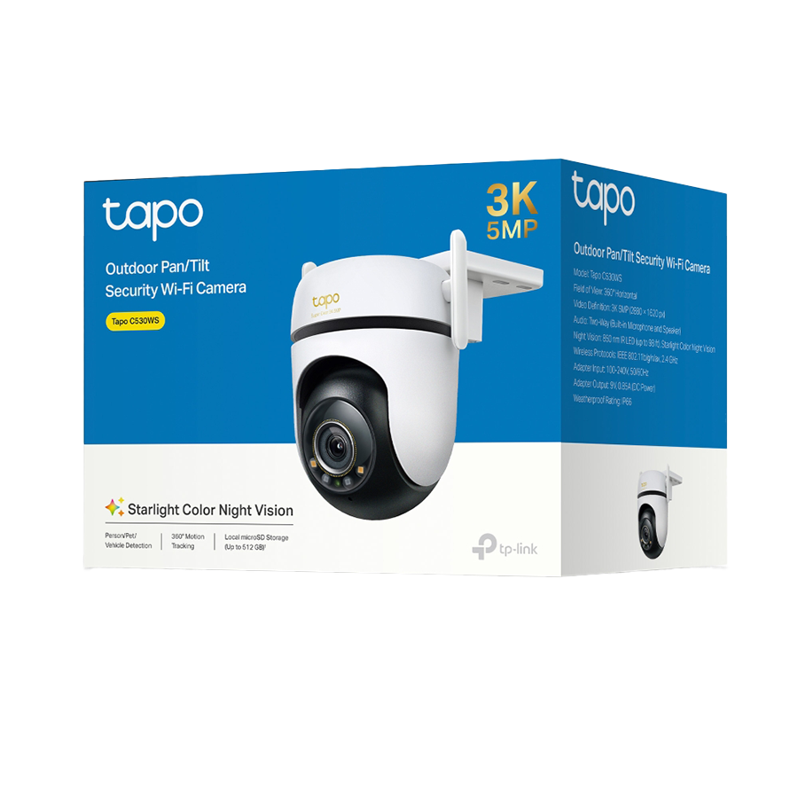 TP-Link Tapo C530WS Outdoor Pan/Tilt Security Wi-Fi Camera, 3K 5MP (2880×1620), 2.4 GHz, 2 x External Antennas, 1 x Ethernet Port, Horizontal 360, Pan/Tilt, Starlight Color Night Vision, Smart AI Detection and Notifications (motion, people, pets,..)