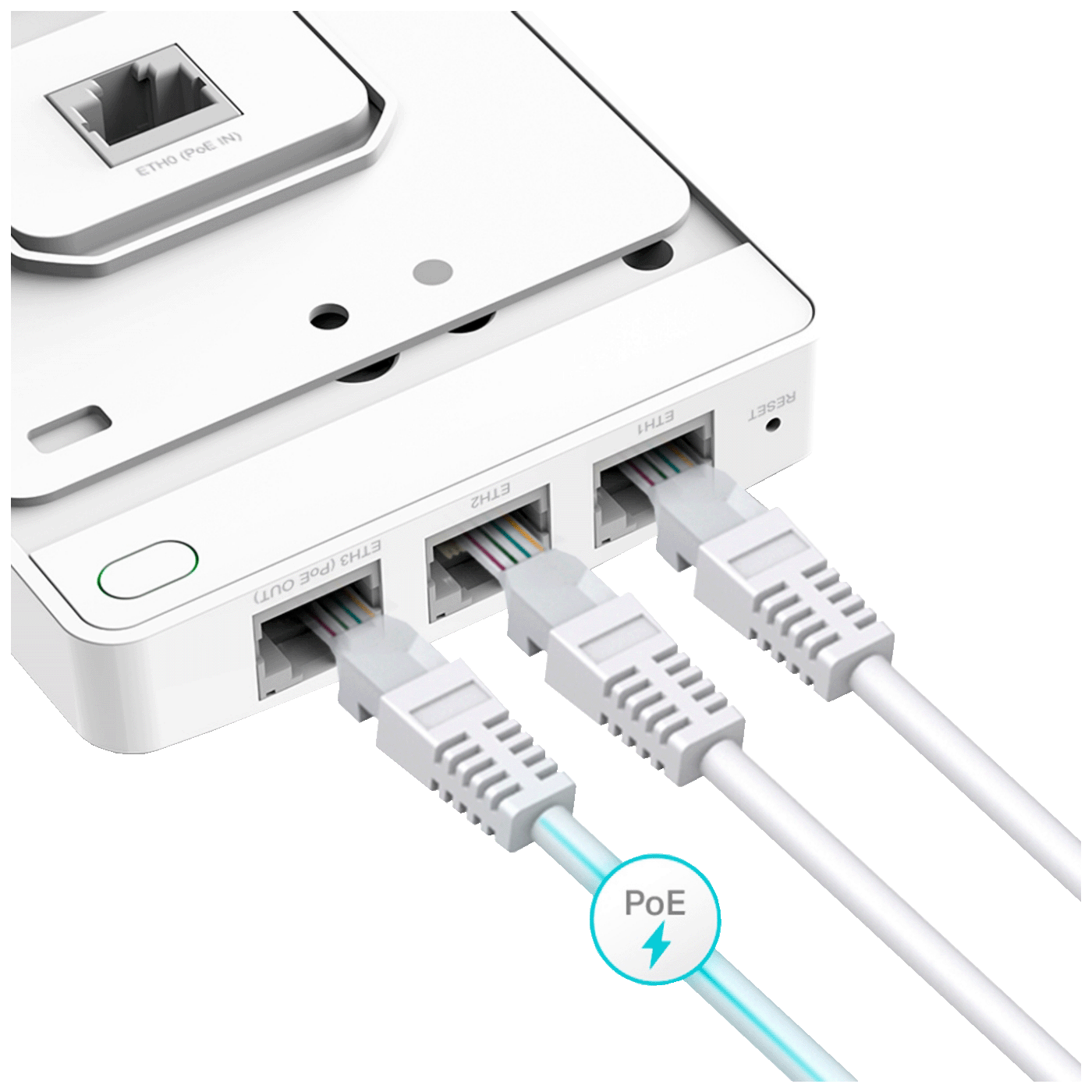 4 gigabitna Ethernet porta (1 x uplink + 3 x downlink), sa jednim downlink portom koji podržava PoE prolaz kako bi se obezbedilo napajanje za žičani uređaj.