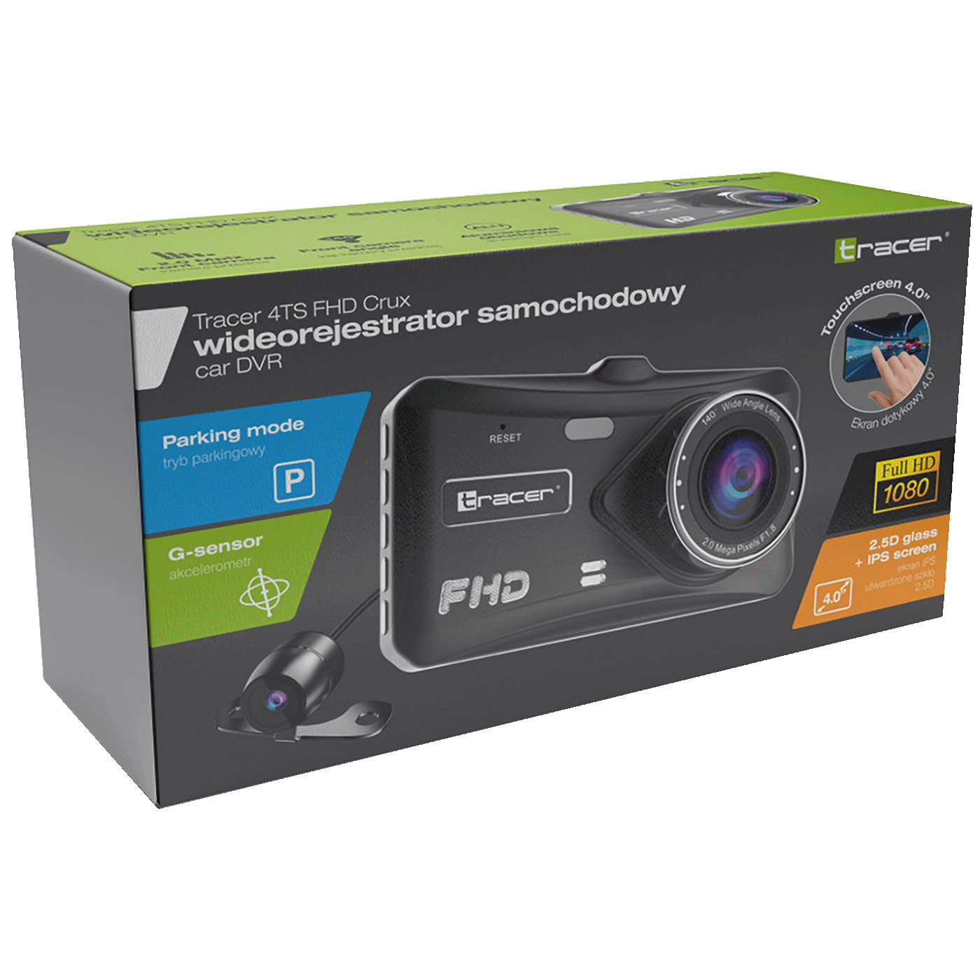 Tracer Auto kamera, 2x 2 Mpx, 4″ LCD, FullHD, microSD, G-senzor – 4TS FHD CRUX DASH CAM