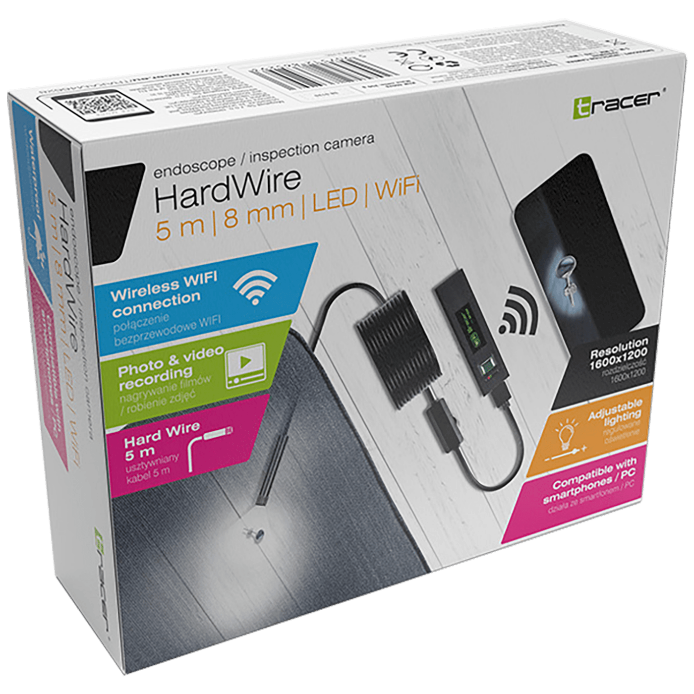 Tracer Kamera , endoskopska, LED, WiFi, vodootporna – HARDWIRE 5M 8MM LED WIFI