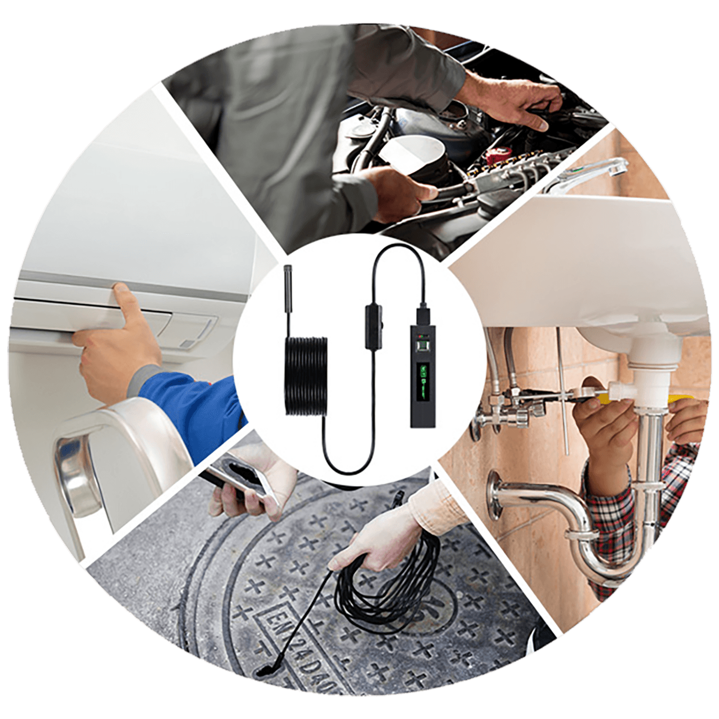 Višenamjenska endoskopska kamera , Tracer HardWire USB, bit će savršena za svaku situaciju u kojoj se vrši pregled / pristup teško dostupnim mjestima, kao što su kanalizacijske cijevi, ventilacijski otvori, strojevi, motori, vozila itd. Odabrano područje, osvijetljeni sa 6 LED dioda (s podesivim intenzitetom svjetla) mogu se fotografirati ili snimati i pohraniti na vaš telefon / računalo.