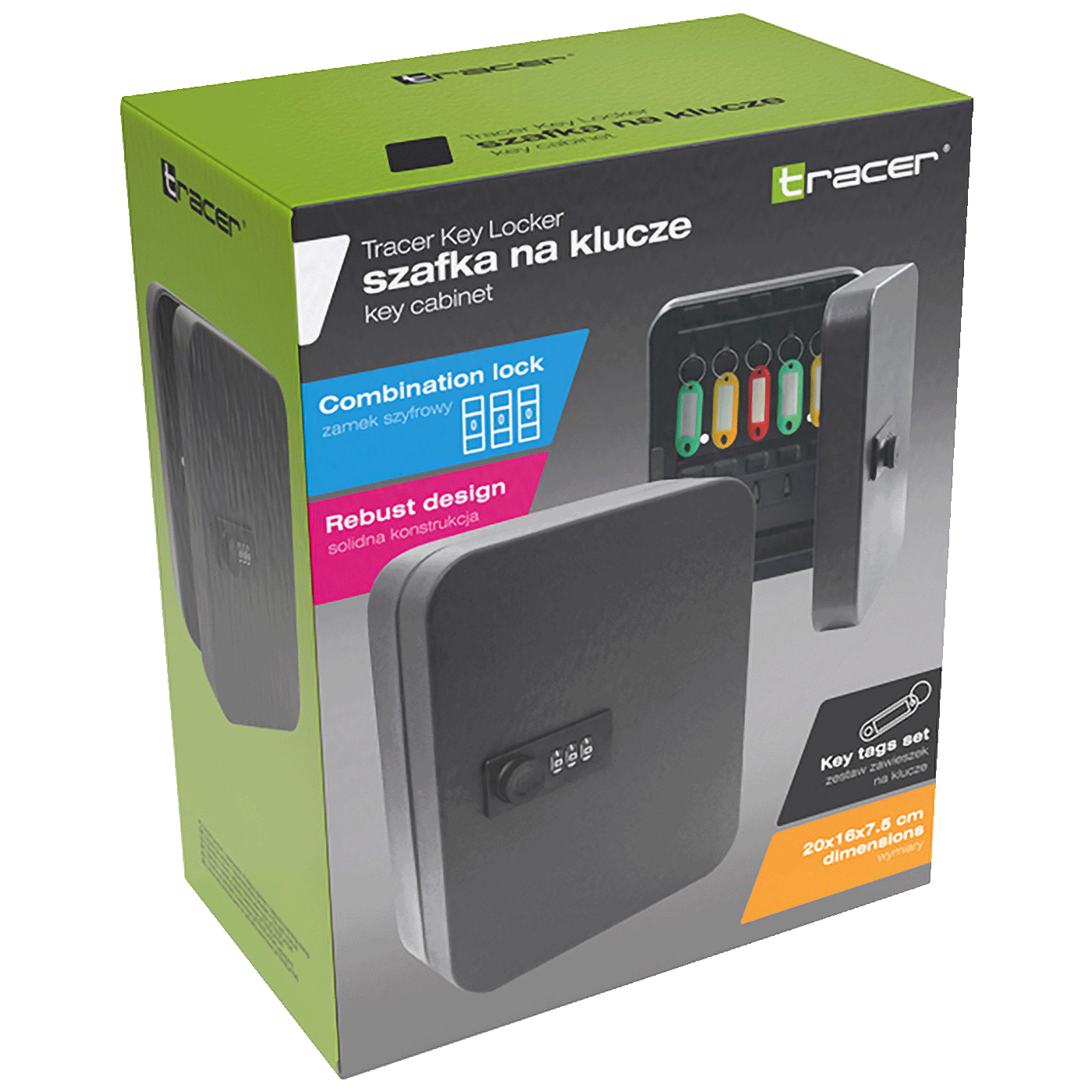 Tracer Key Locker je dizajniran tako da omogućava uredno i praktično odlaganje ključeva. Sadrži 20 kukica za pohranu do 20 setova ključeva, a svaka je opremljena obojenim privjeskom s etiketom. Na taj način ključevi se lako organizuju i brzo pronalaze.