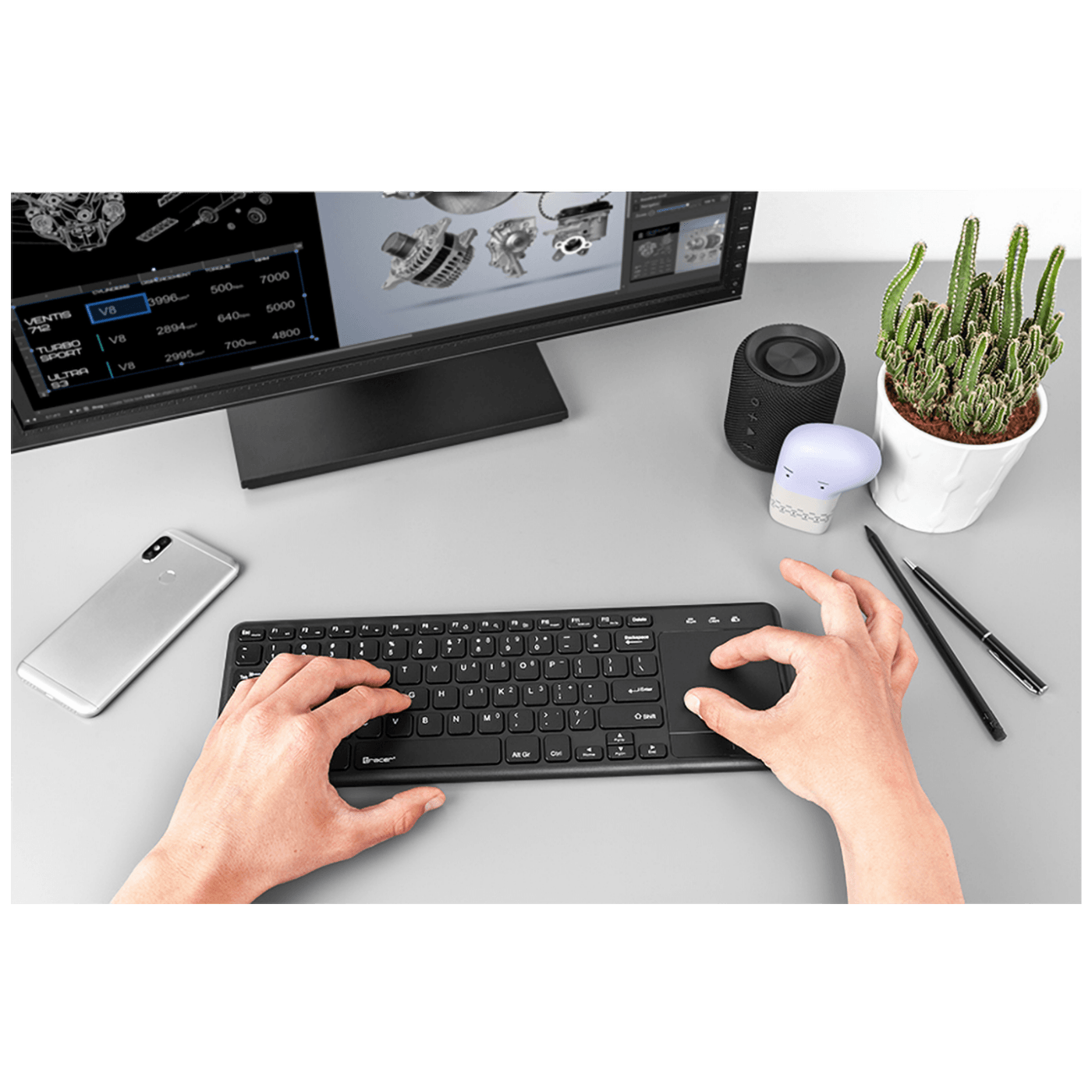 Elegantan i tanak dizajn čini da se uređaj uklopi u svaki interijer. Membranski mehanizam i niski profil osiguravaju udobnu upotrebu čak i pri radu s više sadržaja. Niski profil tipki čini pisanje ne samo ugodnim, već i vrlo tihim. Ovo je savršen prijedlog za domaće pisce i blogere.