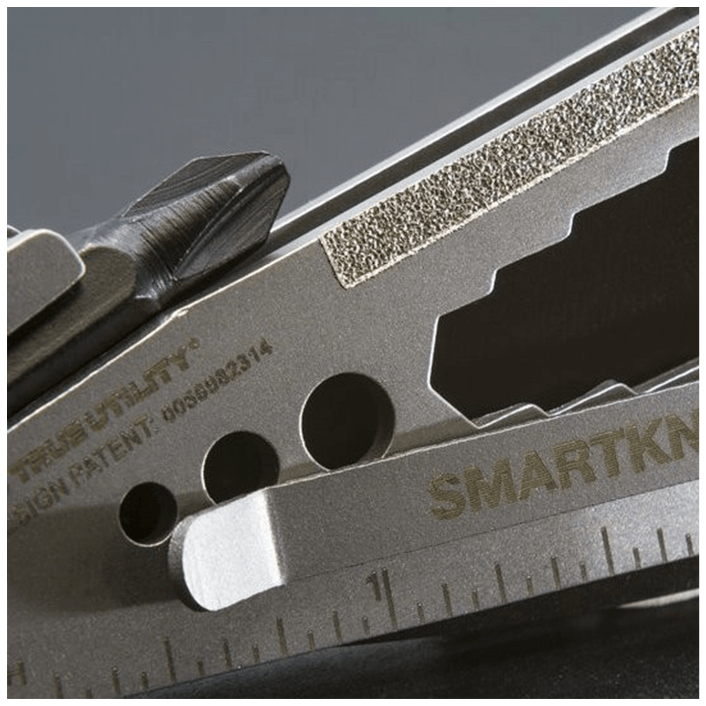 Oštrica Smartknife + izrađena je od polunazubljenog nehrđajućeg čelika i dugačka je samo 6 cm i opremljena je s 15 osnovnih alata.