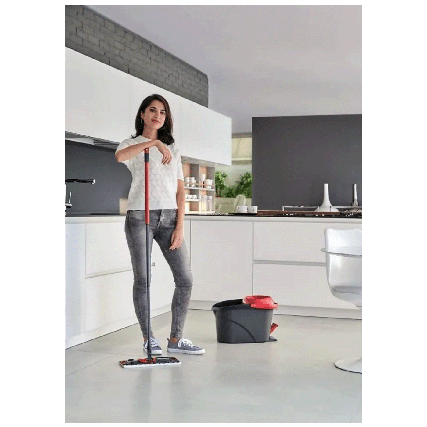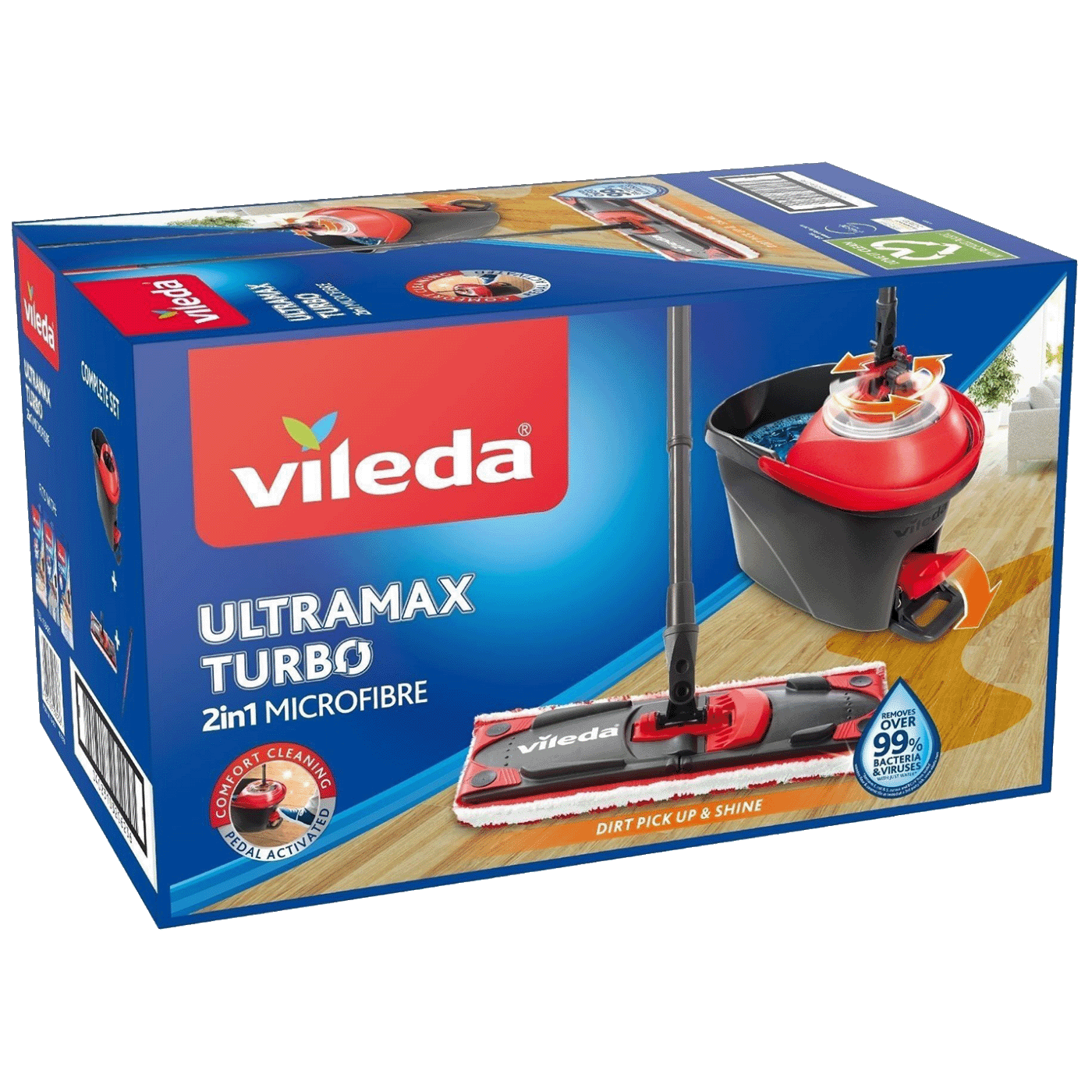 Transformirajte dosadan posao čišćenja poda u efikasnu i ugodnu aktivnost — bez saginjanja i mokrih ruku. Vileda Ultramat Turbo je komplet koji uključuje široki ravni mop s 2-u-1 mikrofiber navlakom, kanticu s pedalom za jednostavno cijeđenje i teleskopsku dršku podesive dužine. Idealan je za sve vrste podova, uključujući laminat, drvo i pločice.
