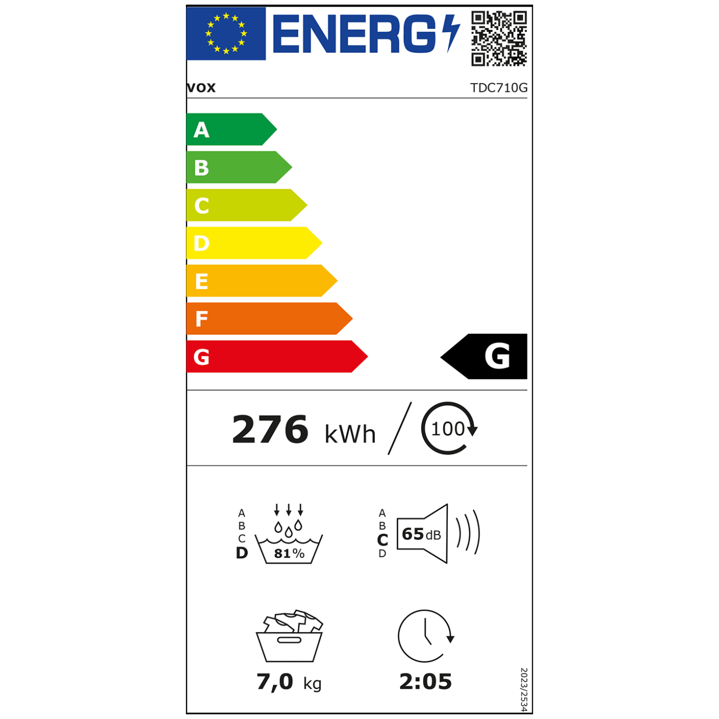 VOX TDC-710G je praktična i pouzdana samostojeća kondenzacijska sušilica za veš kapaciteta 7 kg, odgovarajuća za srednje do veća domaćinstva.