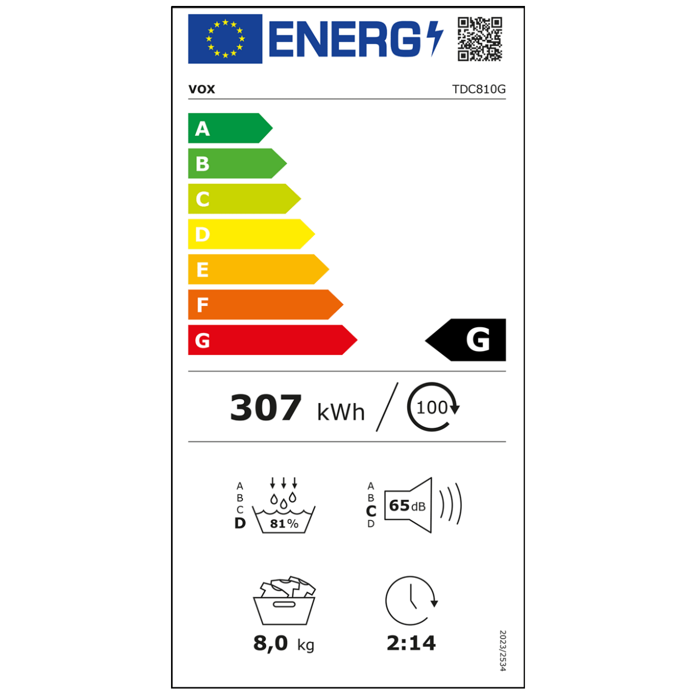 VOX TDC-810G je praktična i pouzdana samostojeća kondenzacijska sušilica za veš kapaciteta 8 kg, odgovarajuća za srednje do veća domaćinstva.