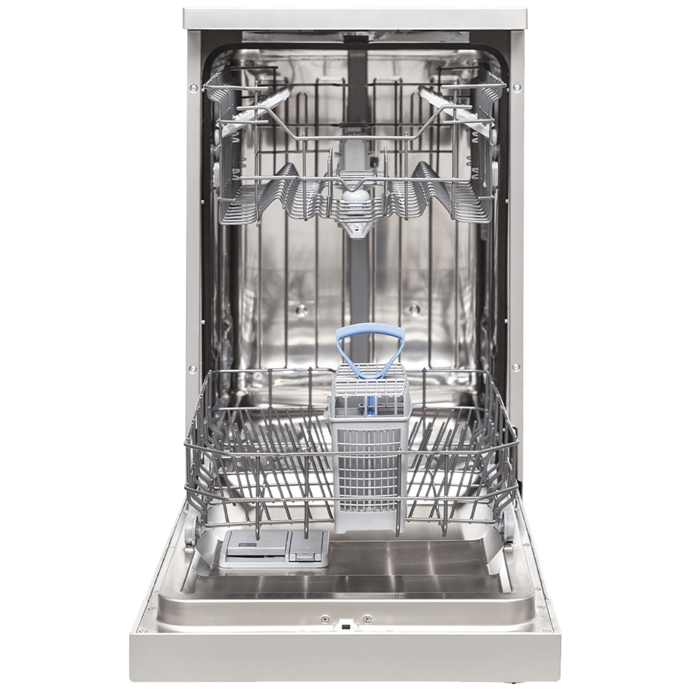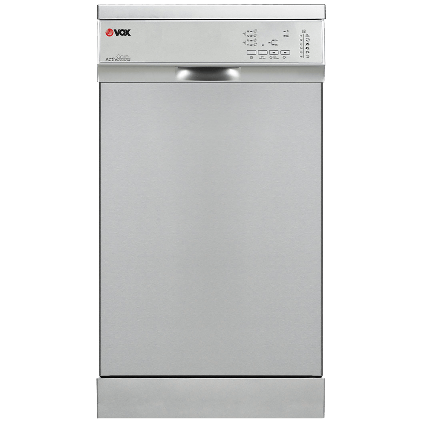Mašina za pranje suđa, širina 45 cm, mehanička kontrola, 10 kompleta, 6 programa, Prewash, Quick 30min/40°C, Eco, Super 50min/65°C, Delicate 40°C, Intensive 65°C, 3 temperature pranja 40-50-65°C, indikator soli, pokazatelj završetka programa, pokazatelj sredstva za ispiranje, korpa za escajg, podesiva gornja košara, gornja mlaznica, predpranje, odgoda pranja 3/6/9 h, opcija pola pranja, indikator ciklusa pranja, energetski razred E