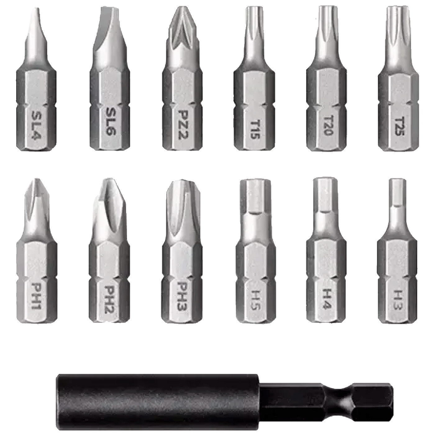 Uređaj dolazi i s 12 visokokvalitetnih metalnih S2 nastavaka visoke preciznosti i debljine od 60 mm, a dolaze i s produžnim dijelom za teško dostupna mjesta. S prednje strane nalaze se tri LED diode koje tvore kružnu svjetlosnu traku koja će se upaliti i automatski osvijetliti kako bi imali bolje osvjetljenje pri radu.