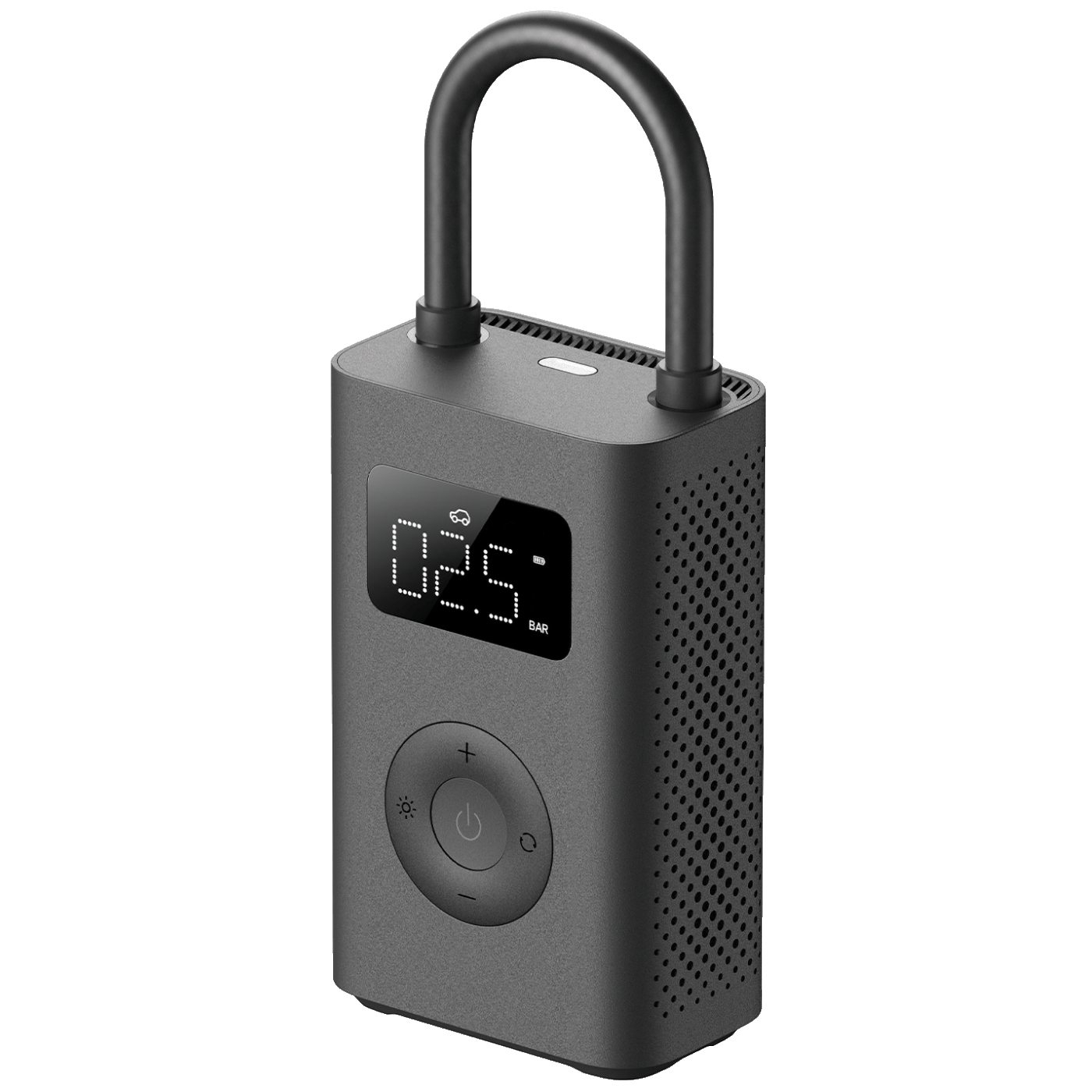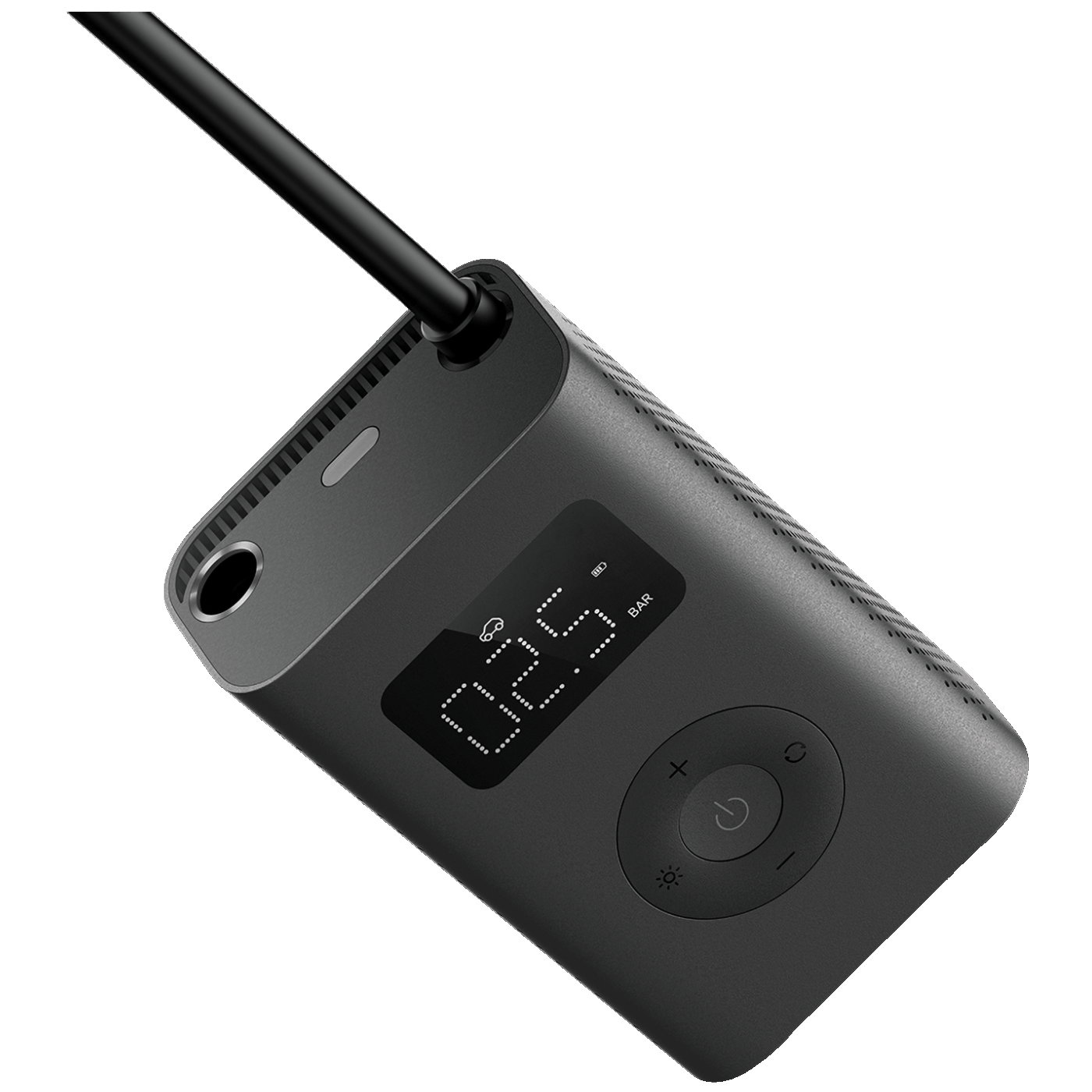 Vazdušni kompresor precizno prikazuje pritisak u gumama u realnom vremenu. Možete podesiti potrebnu vrijednost pritiska zraka ili odabrati unaprijed podešeni način naduvavanja samo pritiskom na dugme. Funkcija automatskog zaustavljanja oslobađa vas potrebe za praćenjem procesa za još veću jednostavnost upotrebe.