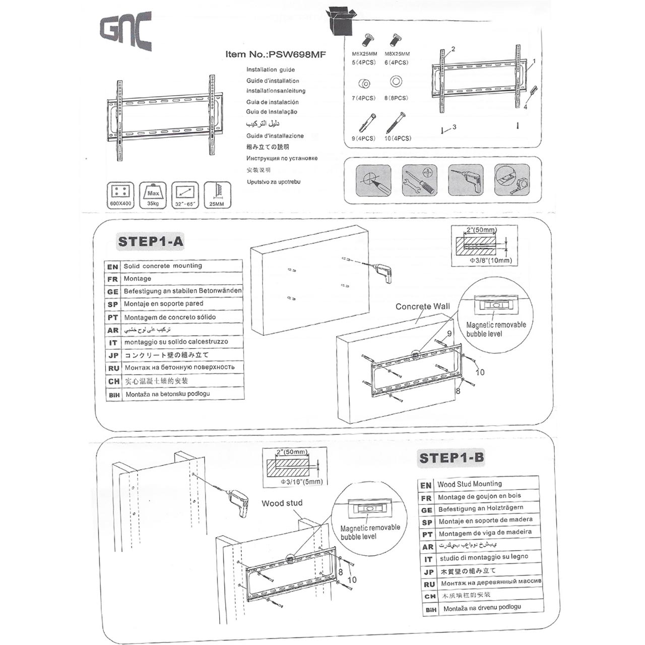 Zidni nosač GNC PSW698MF, 32″-75″, 35kg, VESA 600×400, low profile 25mm