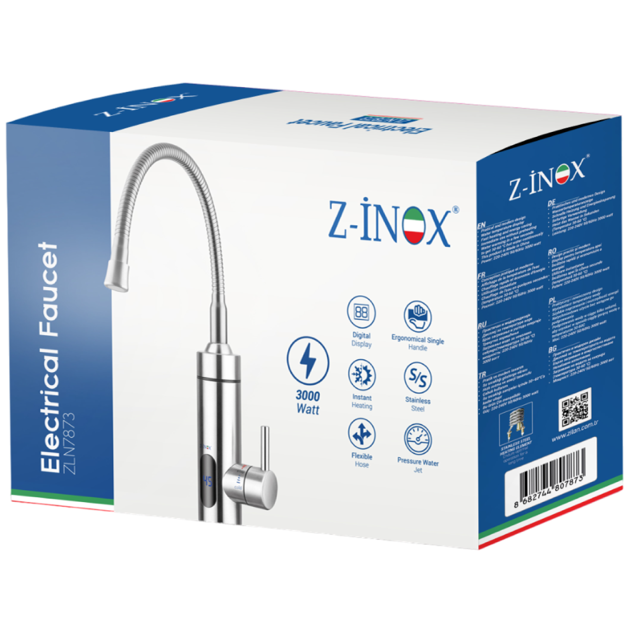 Zilan električna slavina ZLN7873 je moderni protočni grijač vode ugrađen u slavinu koja omogućava trenutno zagrijavanje vode bez prethodnog bojlera ili centralnog sistema grijanja. Sa snagom od 3000 W ova slavina brzo zagrijava vodu do temperature između 30 °C i 60 °C za nekoliko sekundi, omogućavajući stalnu dostupnost tople vode direktno iz slavine. Ima digitalni prikaz temperature vode koji olakšava kontrolu i sigurnost upotrebe, te moderan i praktičan dizajn koji pristaje u kuhinje, kupatila ili druge prostore u domu ili radnom okruženju. Idealna je za korisnike koji žele efikasno i brzo rješenje za tople vode bez velikih instalacija.