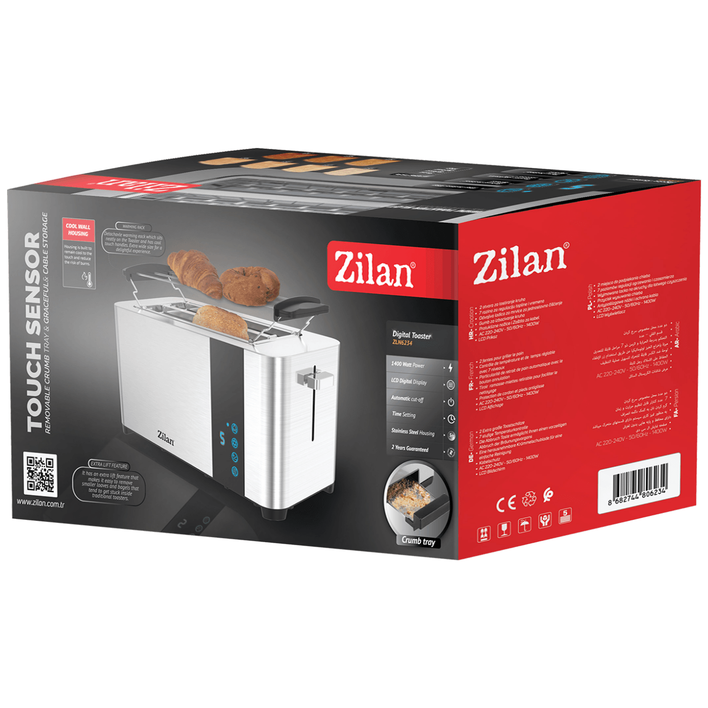 Zilan ZLN6234 je praktičan i pouzdan digitalni toster koji omogućava jednostavno i precizno tostiranje kruha zahvaljujući digitalnom ekranu i sedam nivoa zapečenosti. Sa snagom od 1400 W, automatskim isključivanjem i lako uklonjivom ladicom za mrvice, predstavlja odličan izbor za svakodnevnu upotrebu u kuhinji.